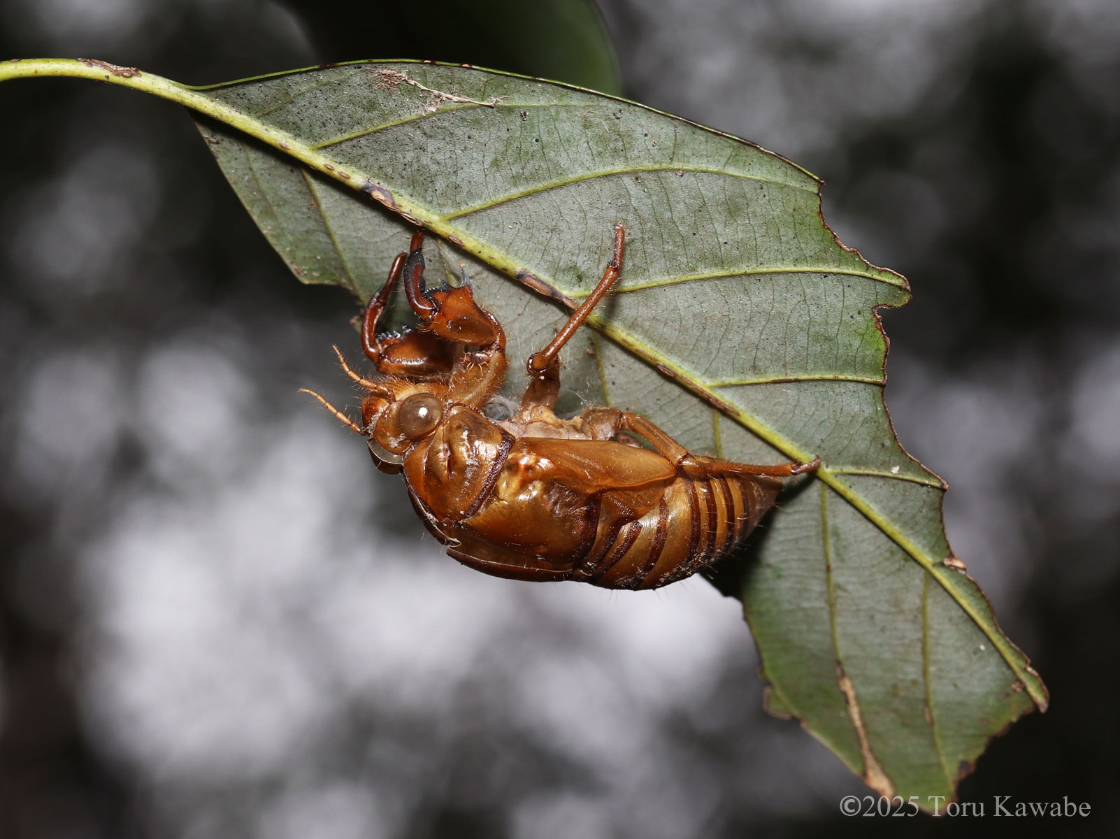地底国冒険譚の主人公を演じ切った幼虫と灼熱の夏空に飛び立った成虫、その両方の面影を宿すアブラゼミの空蝉。精巧なエンプティボックスに見入っていたら、前脚にテングダニの仲間が付着しているのに気づきました。